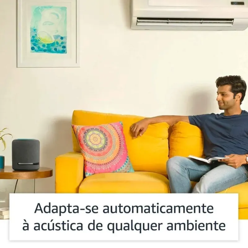 Adaptação a qualquer ambiente: o Echo Studio identifica automaticamente a acústica do seu espaço e faz o ajuste contínuo de reprodução para oferecer a melhor experiência sonora.