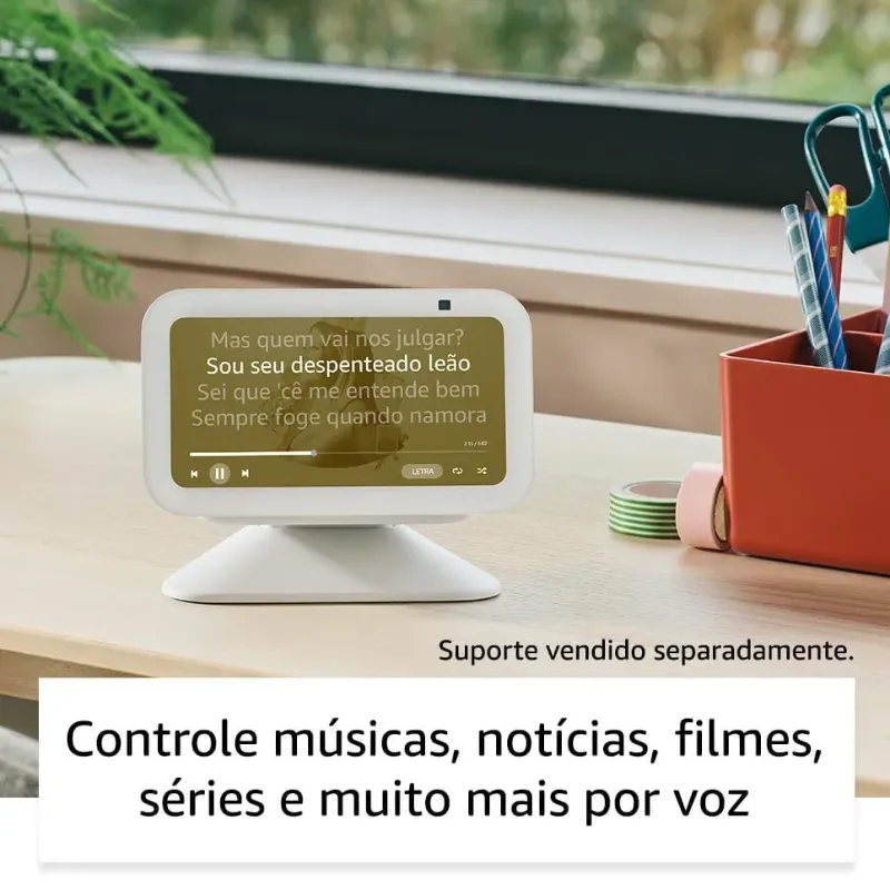 VEJA MAIS COM A CÂMERA INTEGRADA – Use a câmera integrada para ver seus familiares, pets e muito mais. Faça uma chamada por Drop In para sua casa quando você sair ou veja a porta da frente pelo seu Echo Show 5 usando câmeras compatíveis.