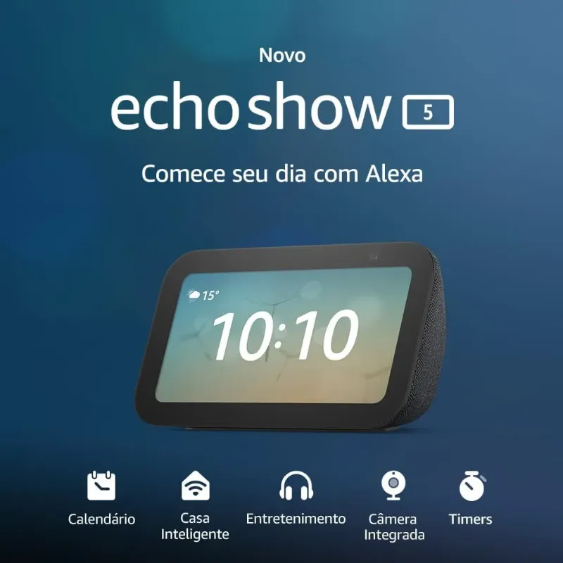 Echo Show 5 (3ª geração - 2023) | Smart display com Alexa, graves 2x mais potentes e som mais nítido