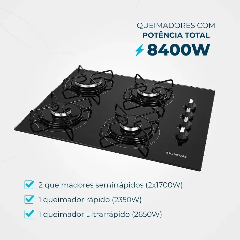 Cooktop a Gás 4 Bocas Mondial CTG-01, Bivolt