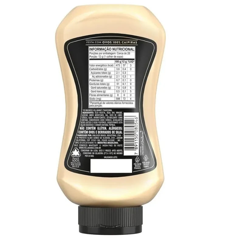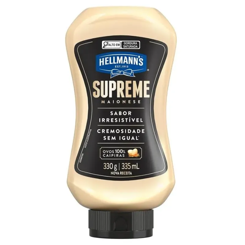Para os amantes de maionese, Hellmann’s Supreme é a maionese perfeita para você! A maionese Hellmann’s Supreme possui um sabor irresistível e cremosidade sem igual, ideal para todos os tipos de lanches, sanduiches e hambúrgueres. Feita com ingredientes selecionados, como ovos de galinha caipira e óleos de origem sustentável, Hellmann’s Supreme entrega o sabor e cremosidade perfeita para você! É a maionese tradicional Hellmann’s que você já conhece, com a qualidade de uma maionese gourmet. Nós na Hellmann's acreditamos que o segredo para o sabor está nos ingredientes que você utiliza em suas receitas. Por isso, nos dedicamos a oferecer uma cremosidade sem igual e utilizamos somente ingredientes de alta qualidade para criar uma maionese que proporcione aos nossos consumidores um sabor irresistível e sem comparação. A Maionese Hellmann’s Supreme contém 57 calorias por colher de sopa (12 g), possui ômega 3 e 6, provenientes do óleo de soja, e não contém glúten, resultando em um produto delicioso e mais saudável. É a perfeita combinação para seus hambúrgueres, batatas fritas, lanches, hot dogs, sanduíches, wraps, molho diferente, salada de maionese, com torradas ou como o petisco para receber os amigos e familiares. Cada frasco é 100% reciclável, cuidando do meio ambiente enquanto deixa seus pratos muito mais saborosos. Mais sabor, menos desperdício. A comida é importante demais para ser desperdiçada, por isso na Hellmann’s investimos na versatilidade de nossos produtos. Isso permite que você transforme o que restou em sua geladeira em verdadeiras e deliciosas refeições. Inspire-se com as nossas receitas.