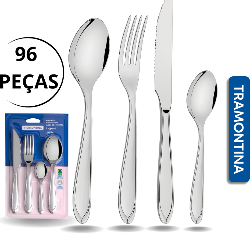 Jogo de Talheres 96 peças Aço Inox Faqueiro Laguna Tramontina