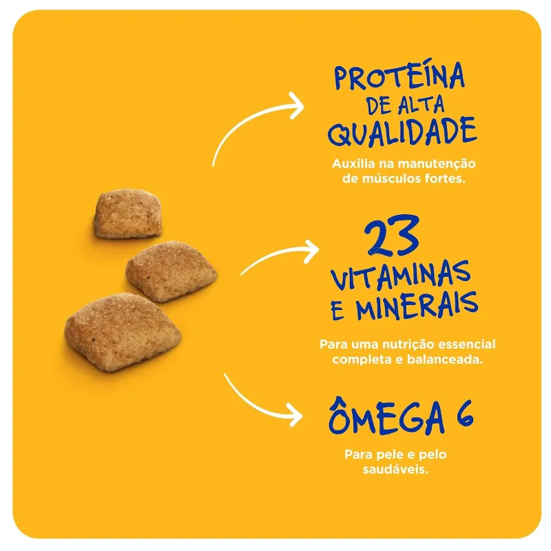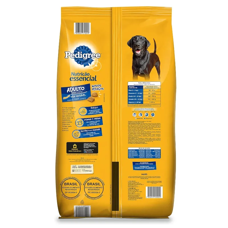 A vida saudável que seu cão merece, começa com a nutrição que oferece o nível ideal de ingredientes para manter músculos fortes, pele e pelos bonitos. por essa razão a ração seca pedigree nutrição essencial carne para cães adultos raças médias e grandes é o alimento ideal para o seu pet. você sabia? todos os nossos produtos cumprem com os mais altos padrões de qualidade certificados por instituições reconhecidas mundialmente. as receitas de pedigree são desenvolvidas com base na ciência do centro de pesquisas waltham, a maior autoridade mundial no cuidado e nutrição de animais de estimação. cada vez que você compra pedigree, nós doamos parte da renda para ajudar cães abandonados a encontrar lares felizes. conheça o programa em nossas redes sociais: ícone do facebook ícone do twitter, ícone do instagram o valor total a ser doado para instituições no brasil será de, no mínimo, r$250.000 e, no máximo, de r$1.000.000. pedigree se reserva o direito de selecionar as instituições a serem beneficiadas