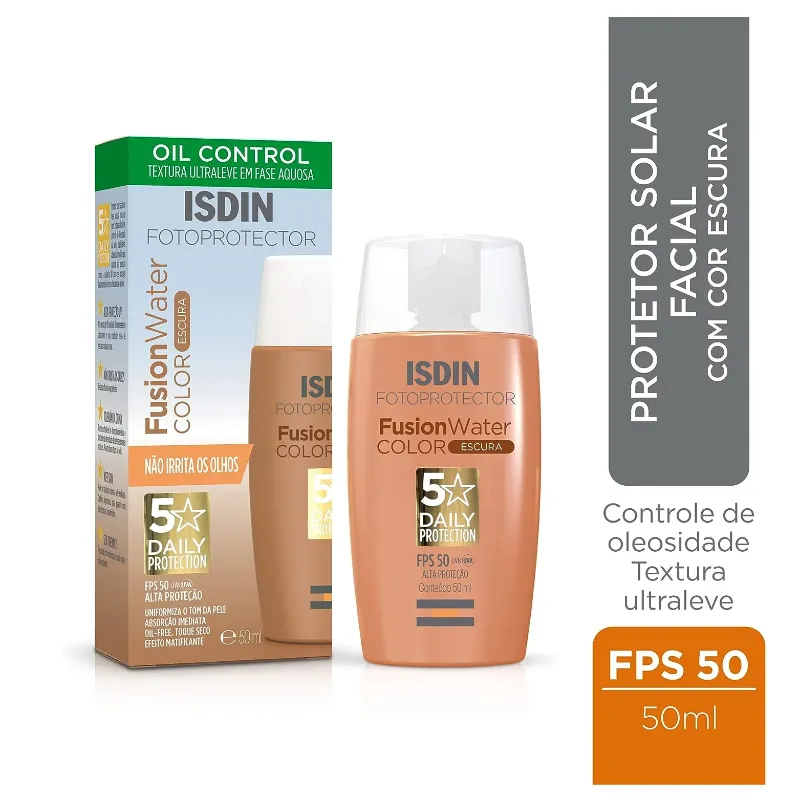 Protetor Solar Facial ISDIN Fusion Water 5 Stars Color FPS 50,cor escura