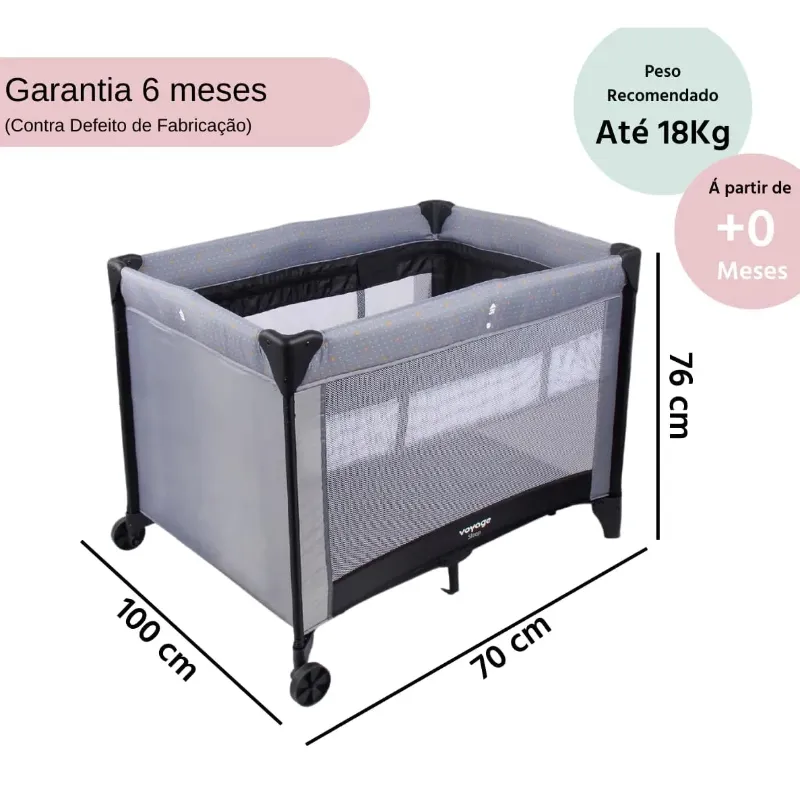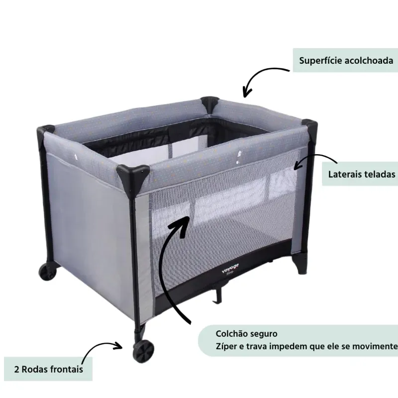 Tem 2 alturas de uso, mosquiteiro, e amplo bolso lateral. Colchão com zíper e trava.Tem 2 rodas que facilitam movimentá-lo e bolsa que permite transportá-lo. O berço Sleep acompanha um amplo mosquiteiro com zíper, que irá proteger o bebê de qualquer mosquito que possa picá-lo ou incomodá-lo. Por sua dimensão ampla, pode ser utilizado para o bebê dormir ou até mesmo para ele brincar. Com as duas rodinhas localizadas na parte frontal do berço, você poderá movê-lo com maior facilidade sem a necessidade de arrastá-lo Possui colchão seguro, com zíper e trava para não movimentar-se enquanto utilizado.