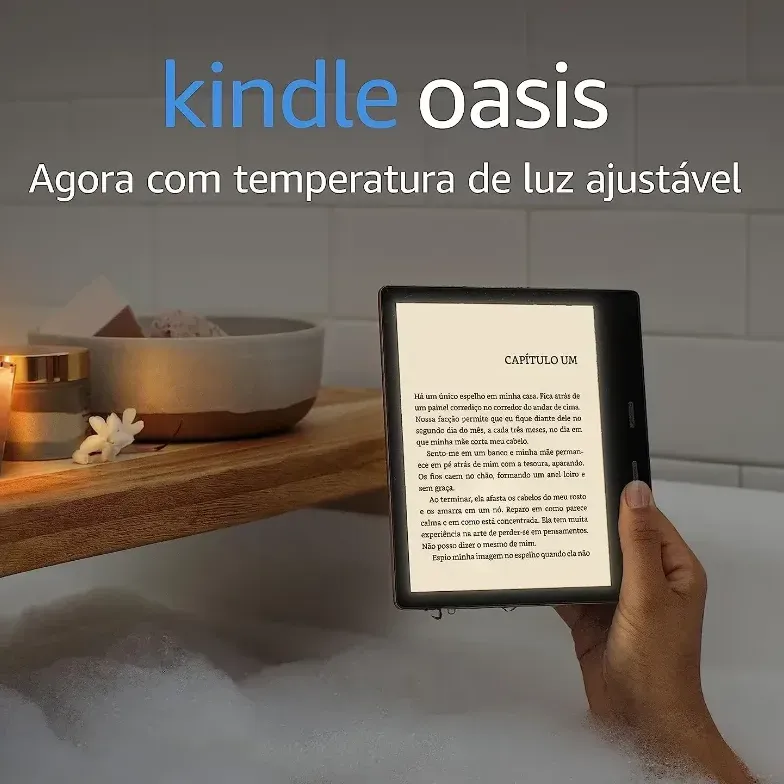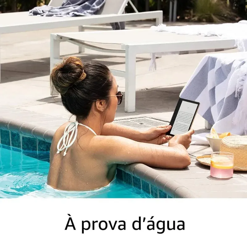À prova d'água (IPX8) para que você possa ler na banheira ou à beira da piscina. Seu Kindle foi testado para suportar imersão acidental na água.